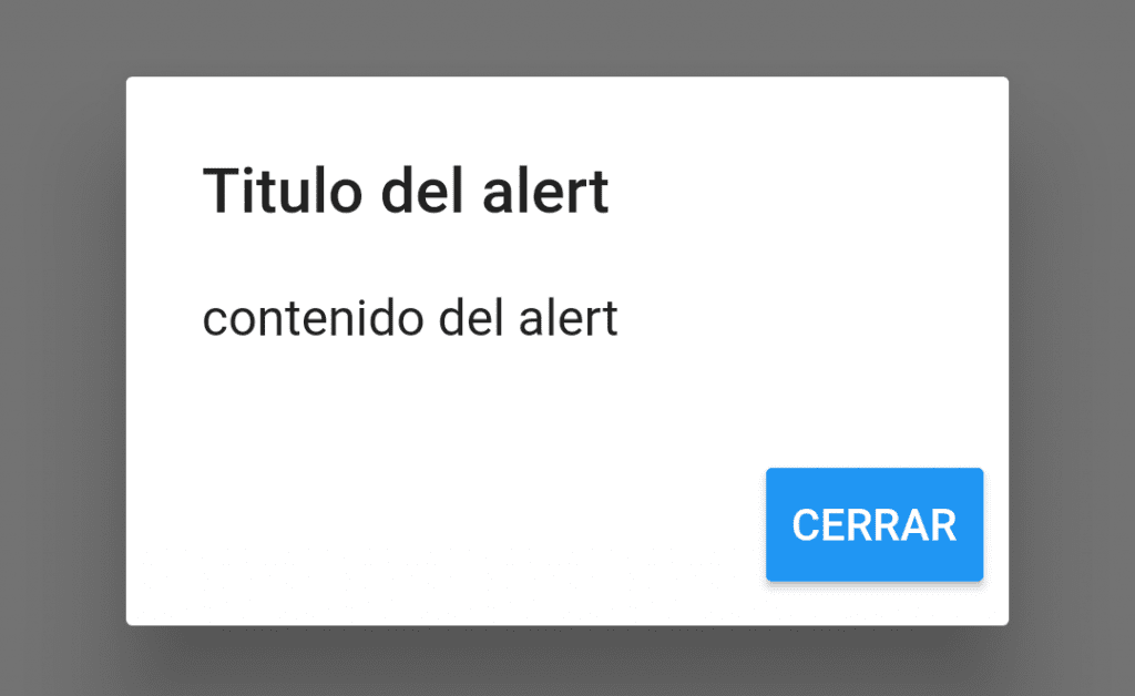 En este ejemplo mostraremos un AlertDialog, con un titulo, contenido y un botón de acción.