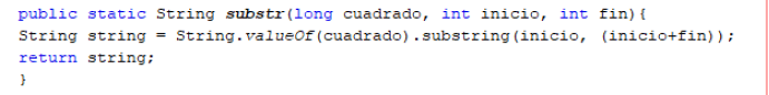 El método substr devuelve un String “cortado” desde el inicio hasta la posición final definidas con las variables “inicio” y “fin”.